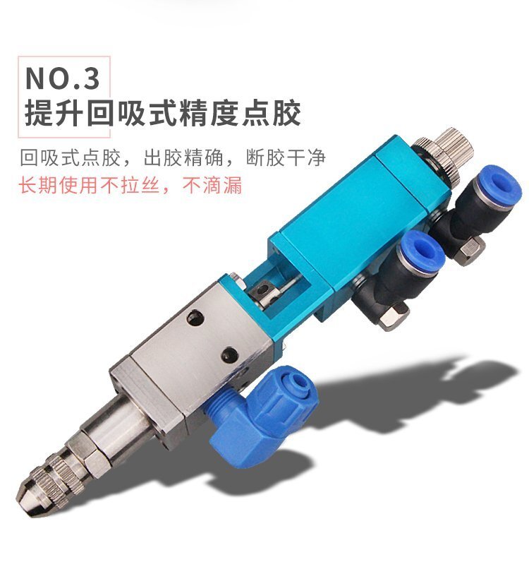 MY-228可調回吸式點膠閥,適合流動性差,中高粘度性膠水,如:油脂、硅膠、 環氧樹脂、黃膠、錫膏等;回吸式點膠閥采用向上運動關膠結構,使停膠同時瞬間回吸斷膠,減少余留針頭上的殘膠,使點膠不產生漏滴、拉絲等現象,可接各式點膠針頭;采用鋁合金陽極化+不銹鋼優質材料制造,不生銹防腐蝕,適合工程/工廠長期生產使用;有大量現貨供應,歡迎咨詢采購!