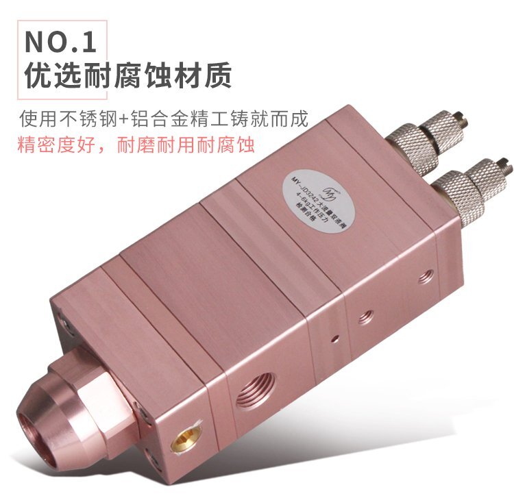 MY-GD3242雙氣缸大流量AB雙液閥,回吸式點膠閥采用向上運動關膠結構,使停膠同時瞬間回吸斷膠,減少余留針頭上的殘膠,使點膠不產生漏滴、拉絲等現象;通過微調螺母可以微調出膠量,可對接動/靜態混合管使用;采用鋁合金陽極化+不銹鋼優質材料制造,不生銹防腐蝕,適合工程/工廠長期生產使用;有大量現貨供應,歡迎咨詢采購!