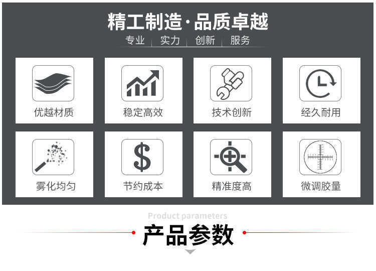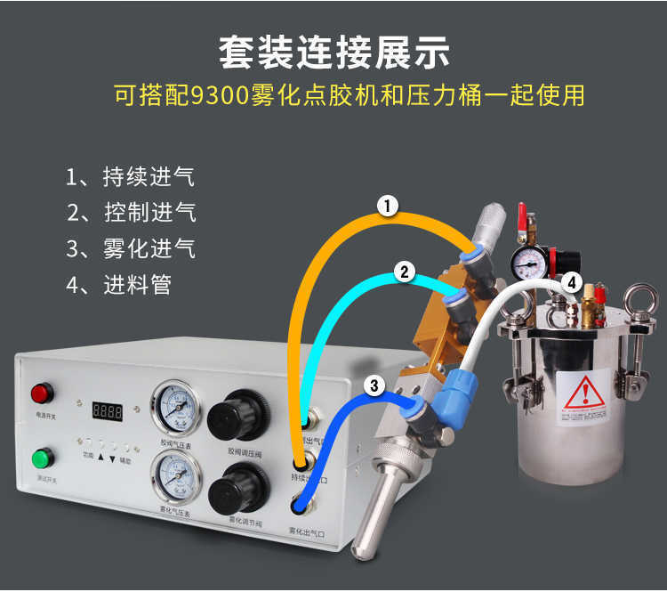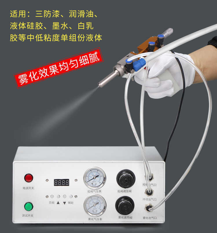 3、精密點膠閥,出膠量可以微調(diào),精度達(dá)到0.1ml,出膠寬度小的可達(dá)到0.1mm,斷膠干凈,杜絕拉絲滴漏等問題;