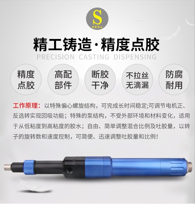 螺桿閥特點:精密螺桿閥外形輕巧,方便手握;操作簡單,靈活性強,點膠精度高。螺桿閥的應用領域:適用于焊錫膏,銀漿,紅膠,油脂,UV膠,硅膠等,應用于焊錫膏焊接,芯片粘結,芯片封裝,圍壩等工藝采用Z向旋轉螺桿進行物料輸送,解決了氣壓點膠方式,由于氣體的可縮性所帶來的脈動,出膠量不一致的問題。電機正反轉分別控制,正向旋轉可使用物料按照需要的流量被均勻擠出,反向旋轉可實現熱熔膠的回吸,避免漏膠,拉絲等現象適合工程/工廠長期生產使用;有大量現貨供應,歡迎咨詢采購!
