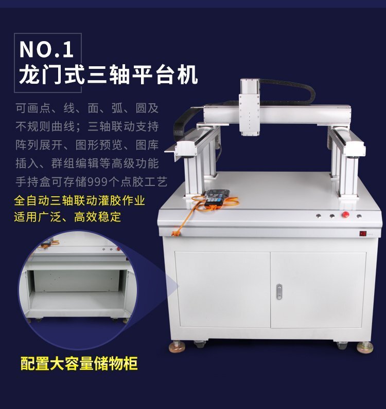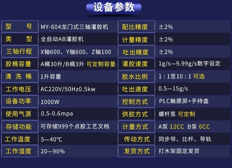 MY—601全自動(dòng)龍門式三軸平臺(tái)AB灌膠機(jī),三軸聯(lián)動(dòng)灌膠,自動(dòng)精準(zhǔn)配比,采用PLC觸摸屏控制,工業(yè)級(jí)器件配合優(yōu)化的控制軟件,具有控制穩(wěn)定、精準(zhǔn)、實(shí)用、壽命長(zhǎng)等特點(diǎn);使用自主研發(fā)控制系統(tǒng),定時(shí)定量吐膠精確一致,功能模式多,人性化簡(jiǎn)易操作,穩(wěn)定高效,降低成本,省工省時(shí);采用不銹鋼板外殼,不生銹防腐蝕,適合工程/工廠長(zhǎng)期生產(chǎn)使用;現(xiàn)貨供應(yīng),歡迎咨詢采購(gòu)!