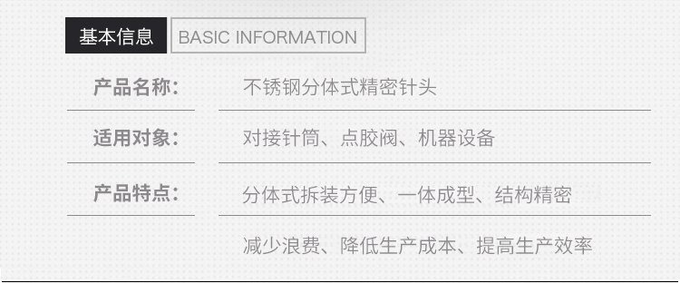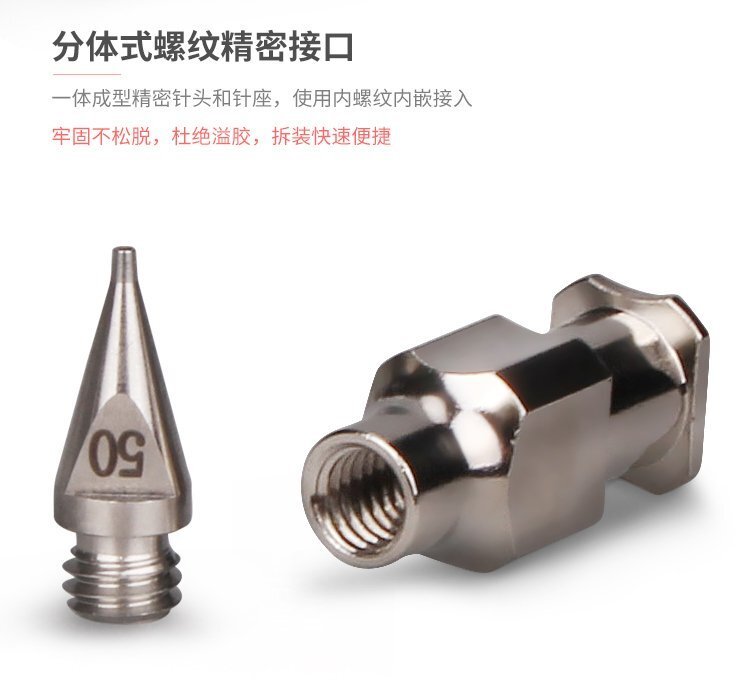 分體式精密針頭,采用303日本進口鋼材鍛造而成,內表使用鏡面拋光工藝,光滑度高不易堵塞;適合工程/工廠長期生產使用,有大量現貨供應,歡迎咨詢采購!