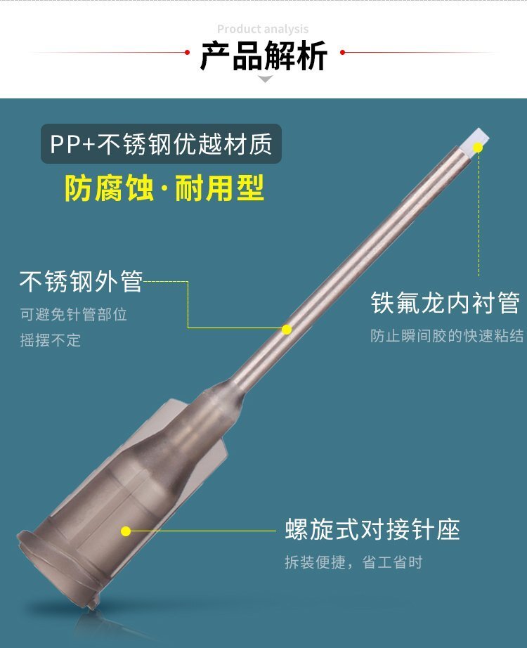 鐵氟龍點(diǎn)膠針頭,由PP+不銹鋼材質(zhì)組成,抗壓耐腐蝕,價(jià)格低廉,規(guī)格齊全,點(diǎn)膠效果好;適合工程/工廠長(zhǎng)期生產(chǎn)使用,有大量現(xiàn)貨供應(yīng),歡迎咨詢采購(gòu)!