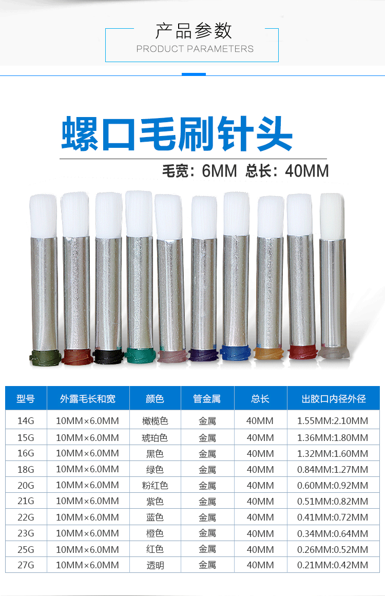 毛刷針頭主要針對不同面積涂膠的產品工藝,具有涂膠均勻、不堆膠、不斷膠,適合大面積表面刷圖膠液;毛刷為尼龍材質,韌性佳,不斷毛,不 掉毛,軟毛接觸產品,安全可靠,極大的提高生產效率!