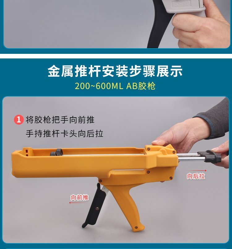此款膠槍為200毫升AB膠筒1:1專用,推桿式結構,打膠高效省力;外殼采用特殊材料制造,不易斷裂,推桿使用質密金屬材質,耐力性好,不彎曲變形,適合工程/工廠長期生產使用;有大量現貨供應,歡迎咨詢采購!