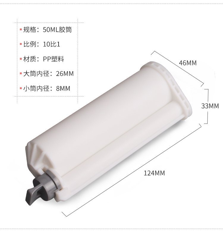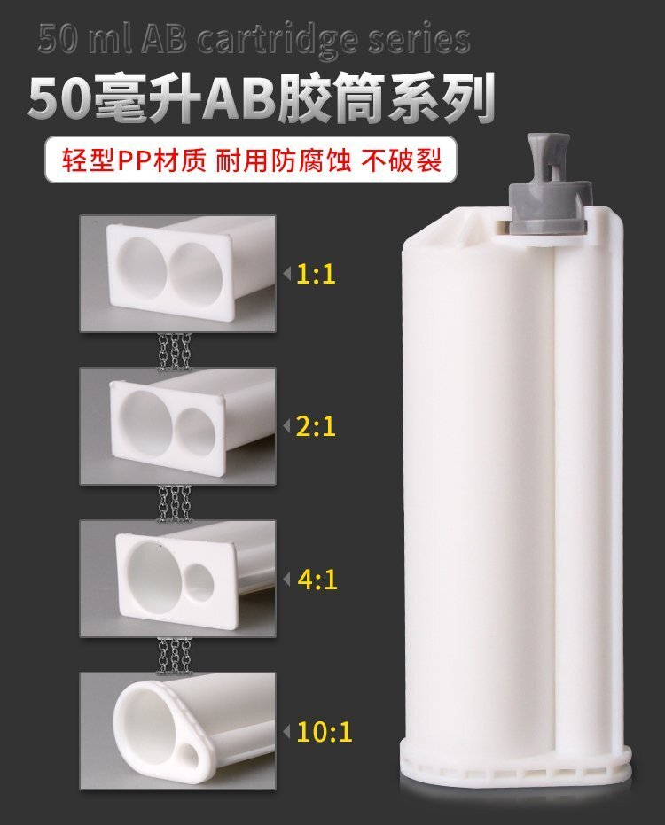 此款膠筒為50毫升1:1AB膠筒,采用韌性PP材料制造,抗壓耐用,不易破裂,適合工程/工廠長期生產使用;有大量現貨供應,歡迎咨詢采購!