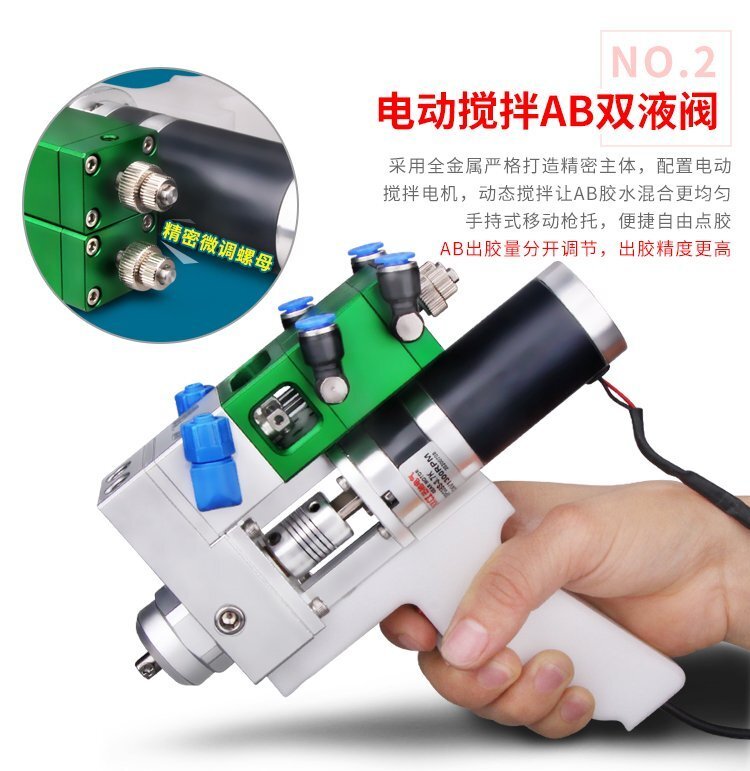 MY-126D手持閥移動點膠機,電動攪拌動態混合,出膠穩定,點膠精度高,不拉絲不滴漏,手持槍托控制,點膠自由輕松,可與各種自動化設備搭配使用;適合多種AB雙組份膠水,如:AB硅膠、封灌黑膠、環氧樹脂、AB水晶膠、AB青紅膠等工業膠水;配合高精密點膠雙液閥,膠水比例可調1:1至3:1,有大量現貨供應,歡迎咨詢采購!