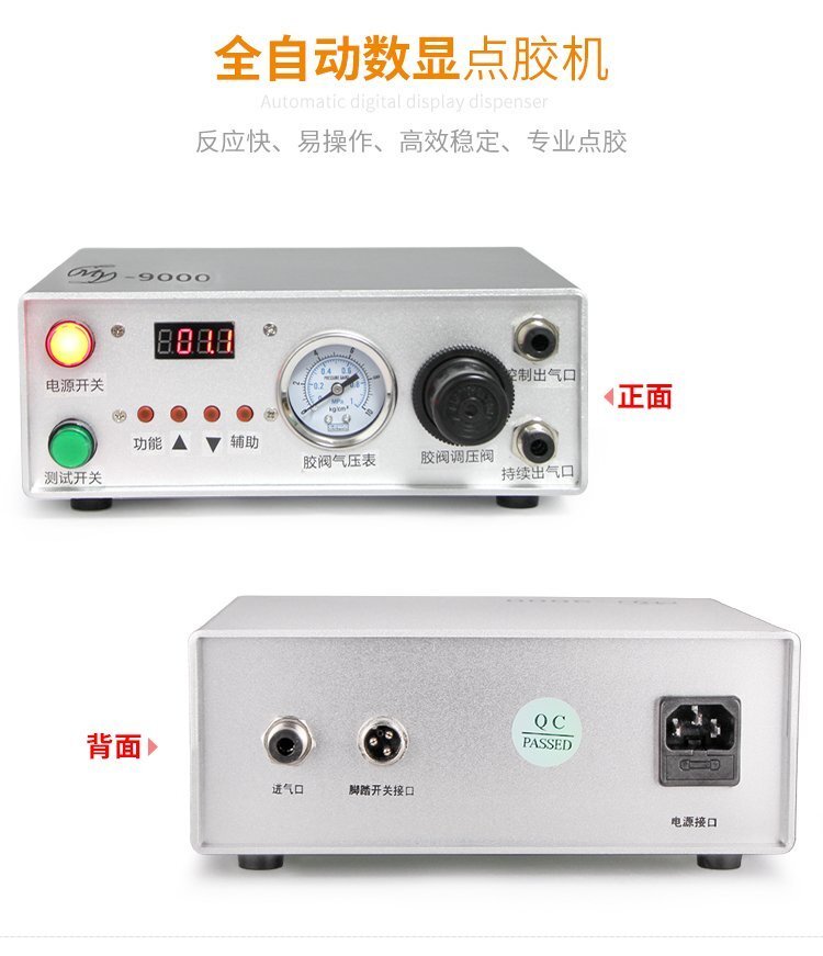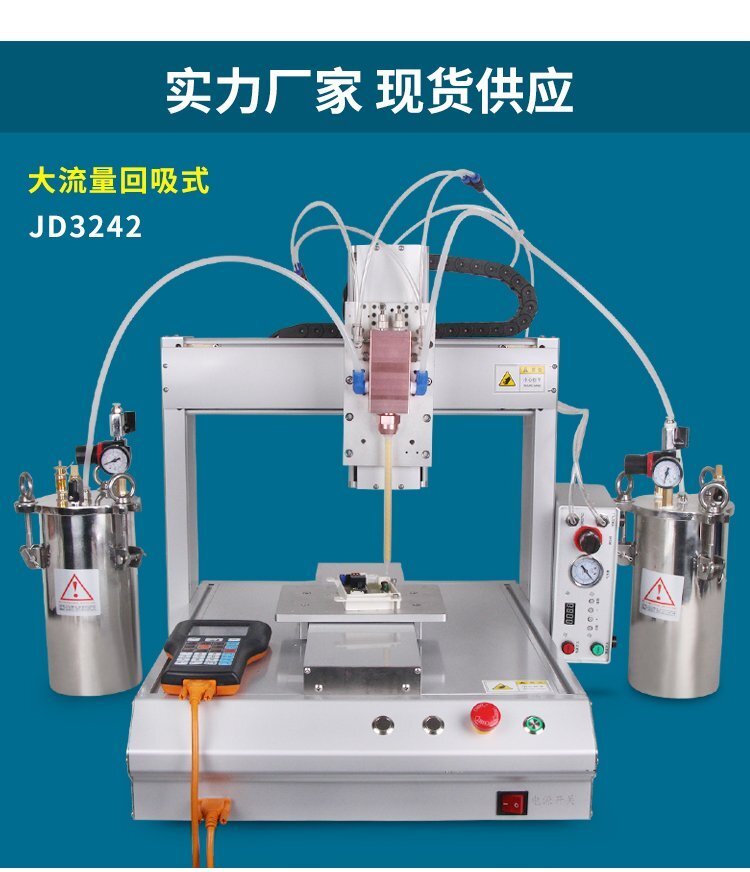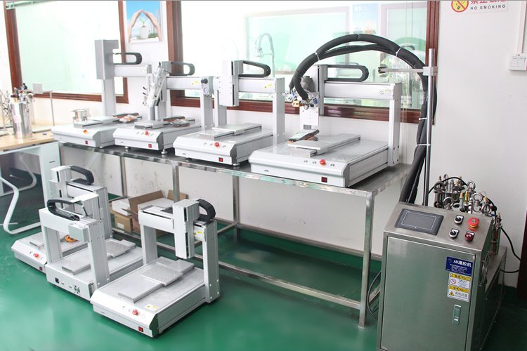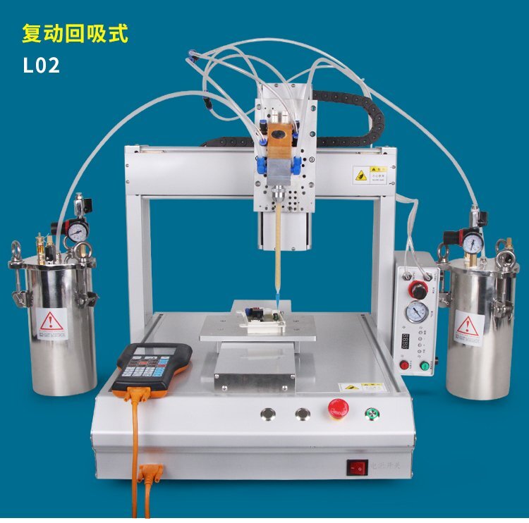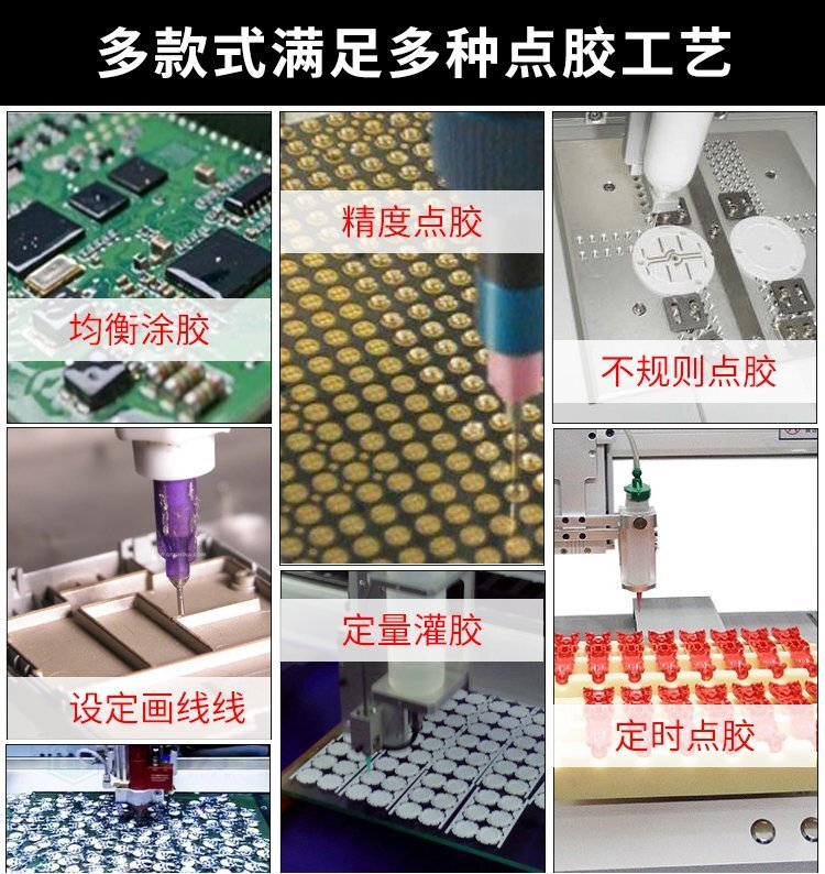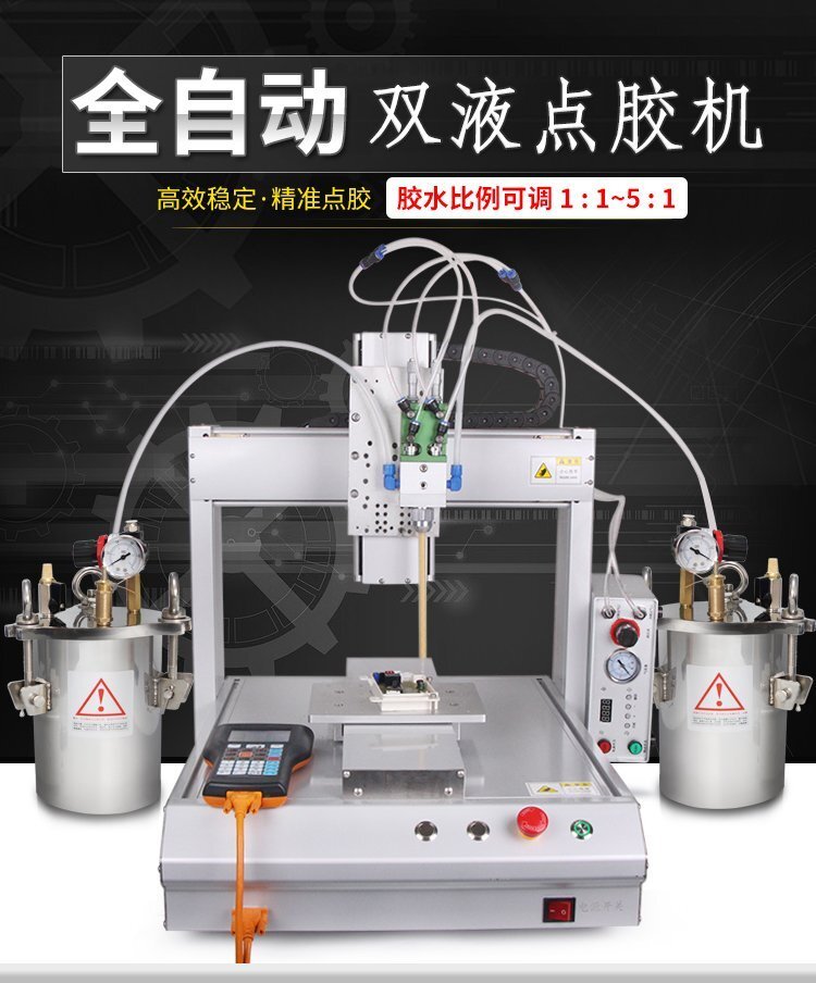 點膠機又稱涂膠機、滴膠機、打膠機、灌膠機等,專門對流體進行控制。并將流體點滴、涂覆于產品表面或產品內部的自動化機器,可實現三維、四維路徑點膠,精確定位,精準控膠,不拉絲,不漏膠,不滴膠。點膠機主要用于產品工藝中的膠水、油漆以及其他液體精確點、注、涂、點滴到每個產品精確位置,可以用來實現打點、畫線、圓型或弧型。
