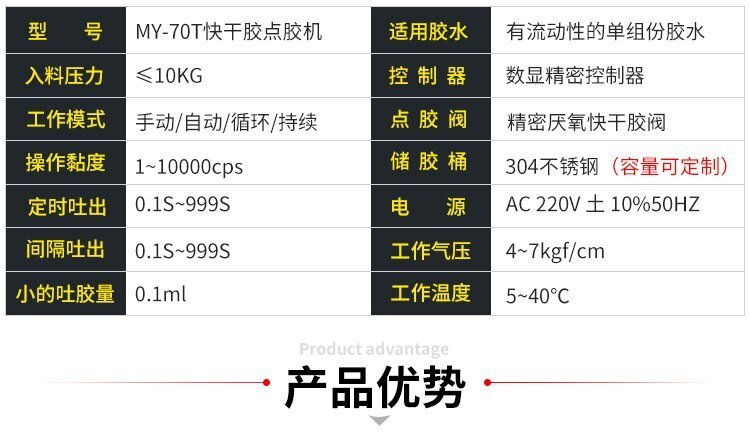 MY-3131T全自動點膠機,是由“精密數(shù)顯點膠機+壓力桶+單液點膠閥”組合而成的點膠套裝,點膠機功能模式多,操作簡易,穩(wěn)定高效;點膠閥回吸式,斷膠干凈,不拉絲,不滴漏;套裝具有控制穩(wěn)定、點膠精度高、應(yīng)用領(lǐng)域廣泛、套裝組件可靈活更換、使用壽命長、節(jié)省成本等優(yōu)勢,適合工程/工廠長期生產(chǎn)使用;有大量現(xiàn)貨供應(yīng),歡迎咨詢采購!