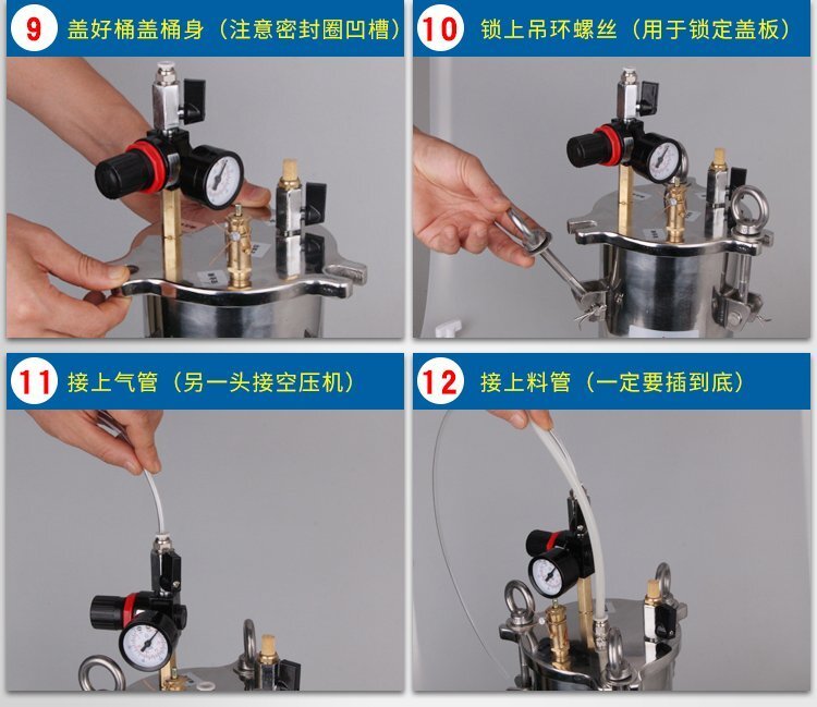 1.每次打開(kāi)桶蓋前,應(yīng)先斷開(kāi)氣源,然后將排氣閥向上扳,把桶內(nèi)的壓縮空氣派出,確保桶內(nèi)無(wú)壓縮空氣后再打開(kāi)桶蓋,以免發(fā)生事故。